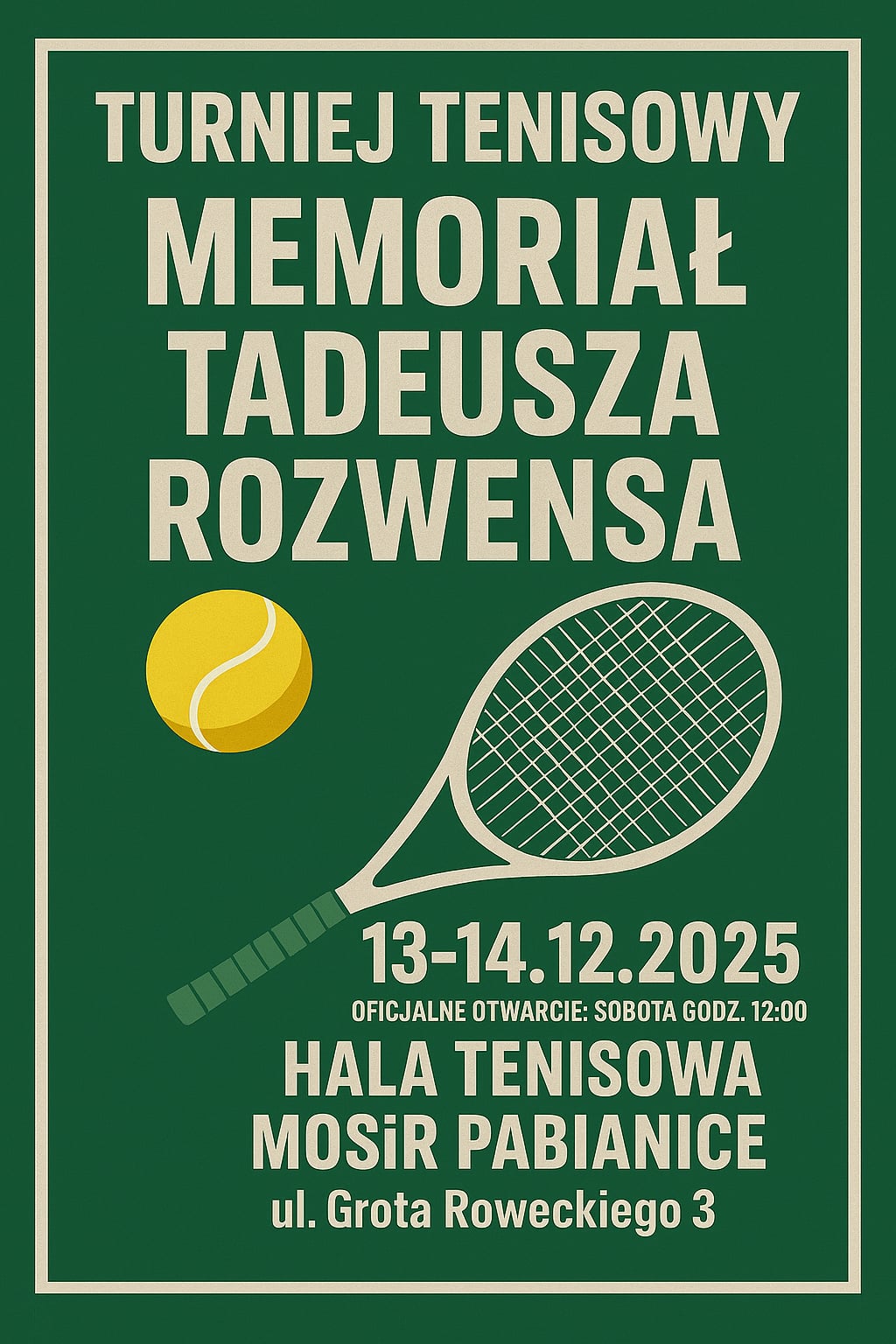 Zapraszamy na Ogólnopolski Turniej Klasyfikacyjny – Memoriał Tadeusza Rozwensa! W dniach 13-14 grudnia w hali tenisowej MOSiR odbędzie się prestiżowy turniej młodzików …